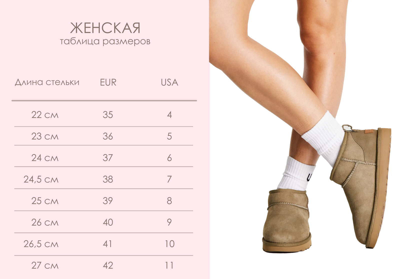 Угги рекомендуется брать размер в размер ( за исключением моделей-маломерок ), чтобы сидели плотно, так как после первой же носки мех значительно прижмется, а замша немного растянется и сядет по ноге .
